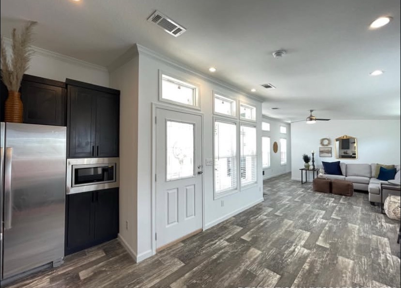Single section with a monoslope roofline you will love this modern style house with its beautiful black cabinets.